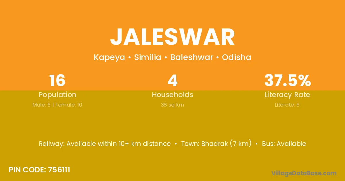 Jaleswar village has a total population of 16 people, of which 6 are males and 10 are females.