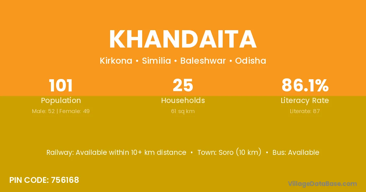 Soro (10 km) is the nearest town to Khandaita village for major economic activities and is located approximately 10 km away.