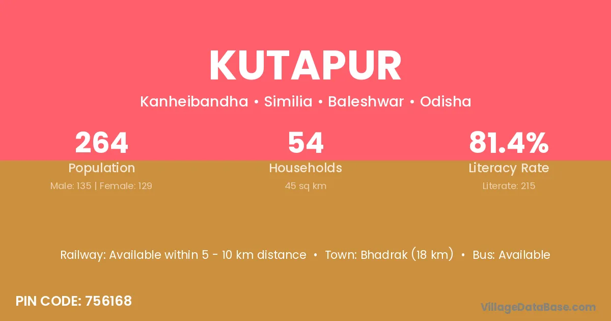 Bhadrak (18 km) is the nearest town to Kutapur village for major economic activities and is located approximately 18 km away.