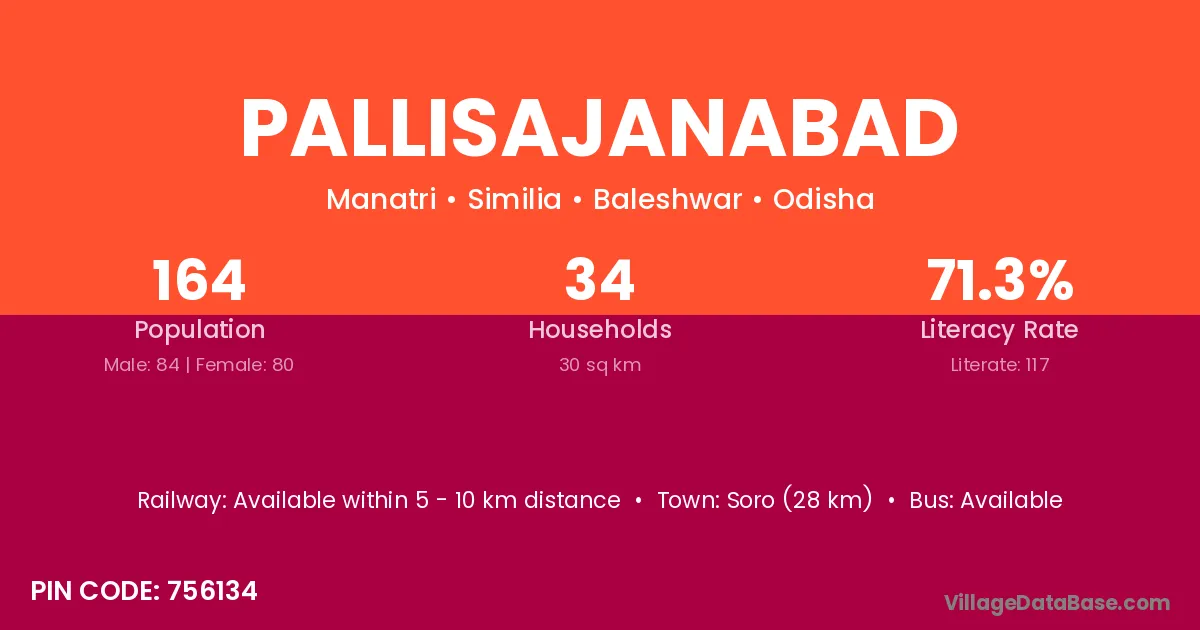 Soro (28 km) is the nearest town to Pallisajanabad village for major economic activities and is located approximately 28 km away.