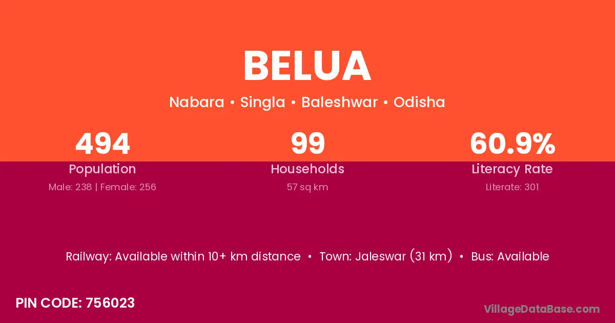 Jaleswar (31 km) is the nearest town to Belua village for major economic activities and is located approximately 31 km away.