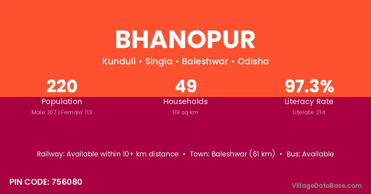 Bhanopur village has a total population of 220 people, of which 107 are males and 113 are females.