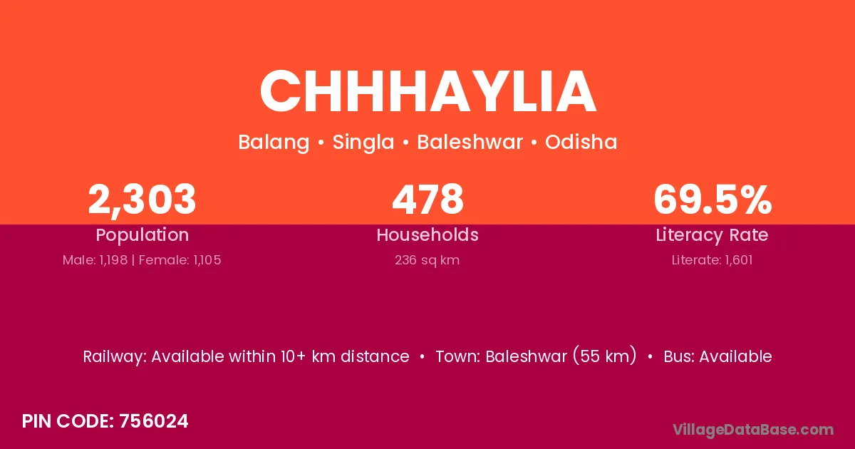 Baleshwar (55 km) is the nearest town to Chhhaylia village for major economic activities and is located approximately 55 km away.