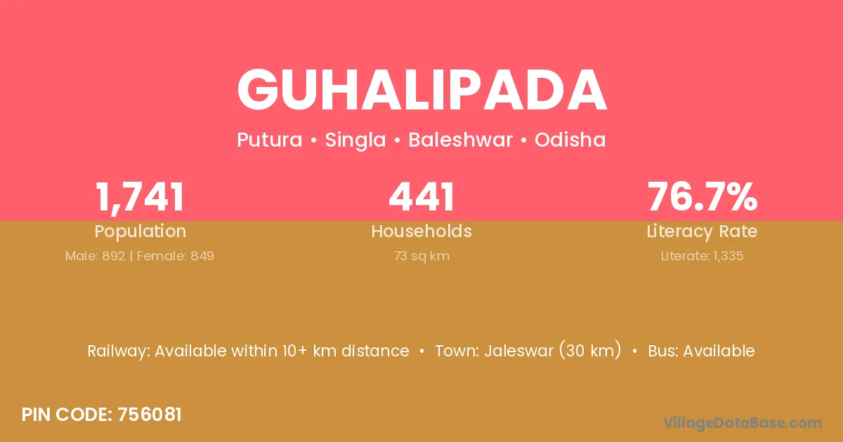 Jaleswar (30 km) is the nearest town to Guhalipada village for major economic activities and is located approximately 30 km away.