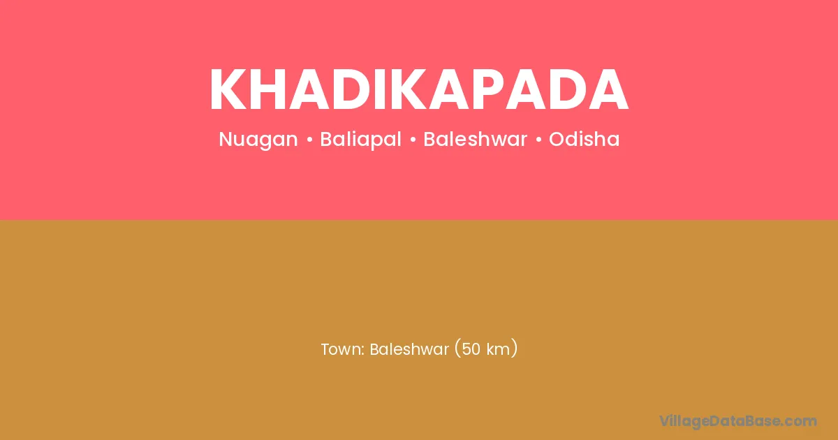 Baleshwar (30 km) is the nearest town to Khadikapada village for major economic activities and is located approximately 30 km away.