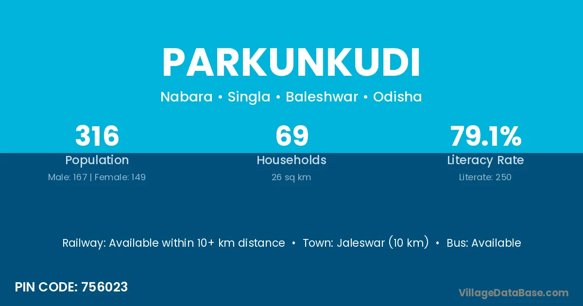 Jaleswar (10 km) is the nearest town to Parkunkudi village for major economic activities and is located approximately 10 km away.
