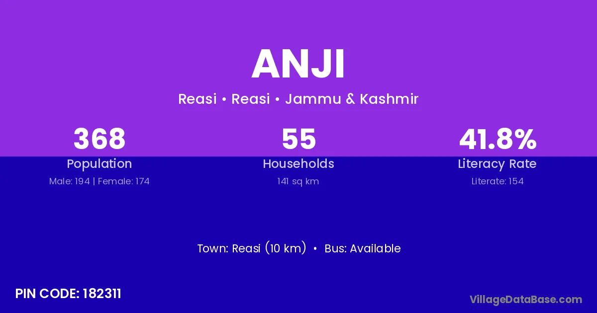 The literacy rate of Anji village is 79.37%. Male literacy stands at 83.02% and female literacy at 75.45%.