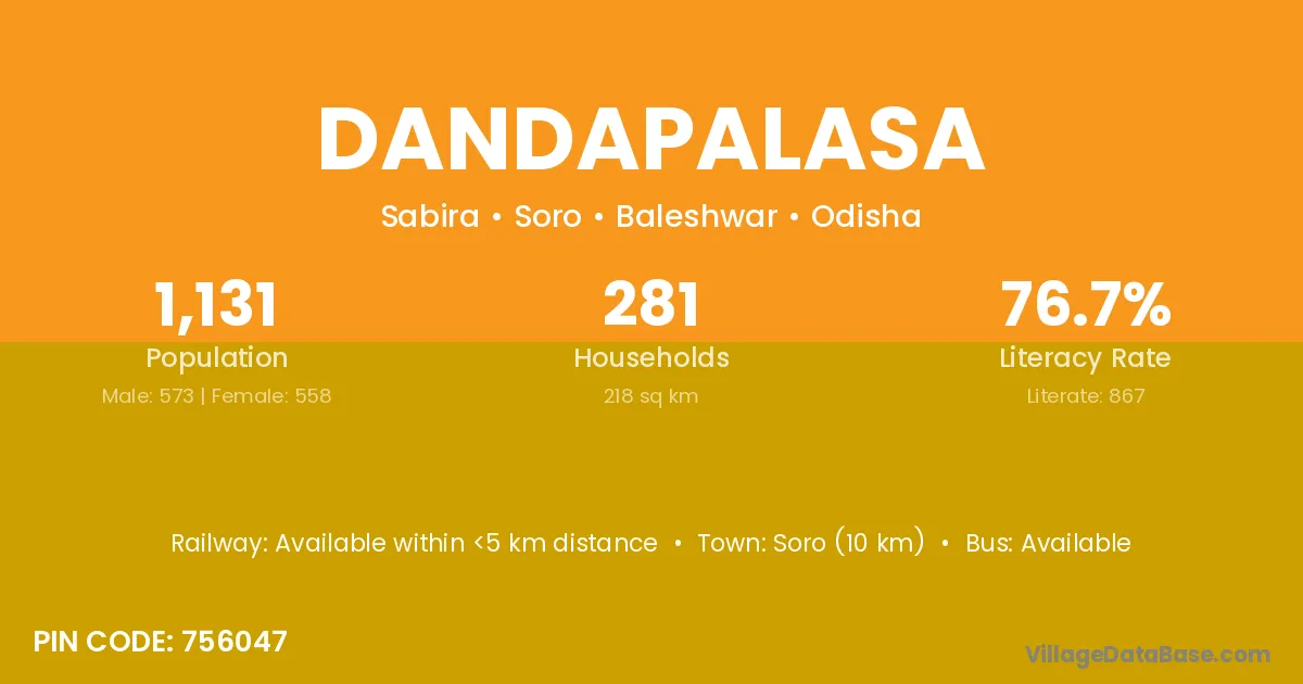Dandapalasa village has a total population of 1,131 people, of which 573 are males and 558 are females.