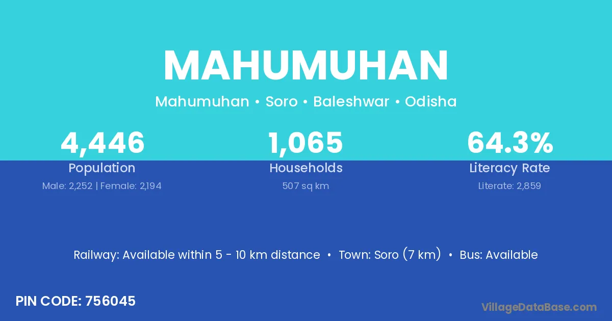 Mahumuhan village is located in the Soro Tehsil of the Baleshwar district in Odisha .