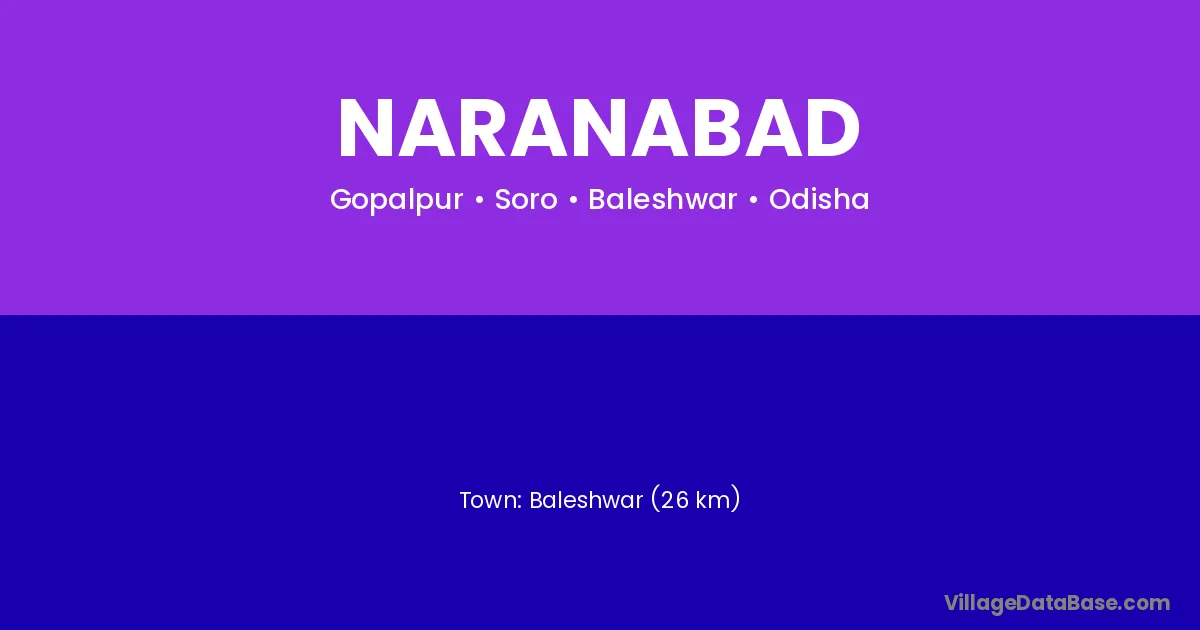 Naranabad village is located in the Soro Tehsil of the Baleshwar district in Odisha .