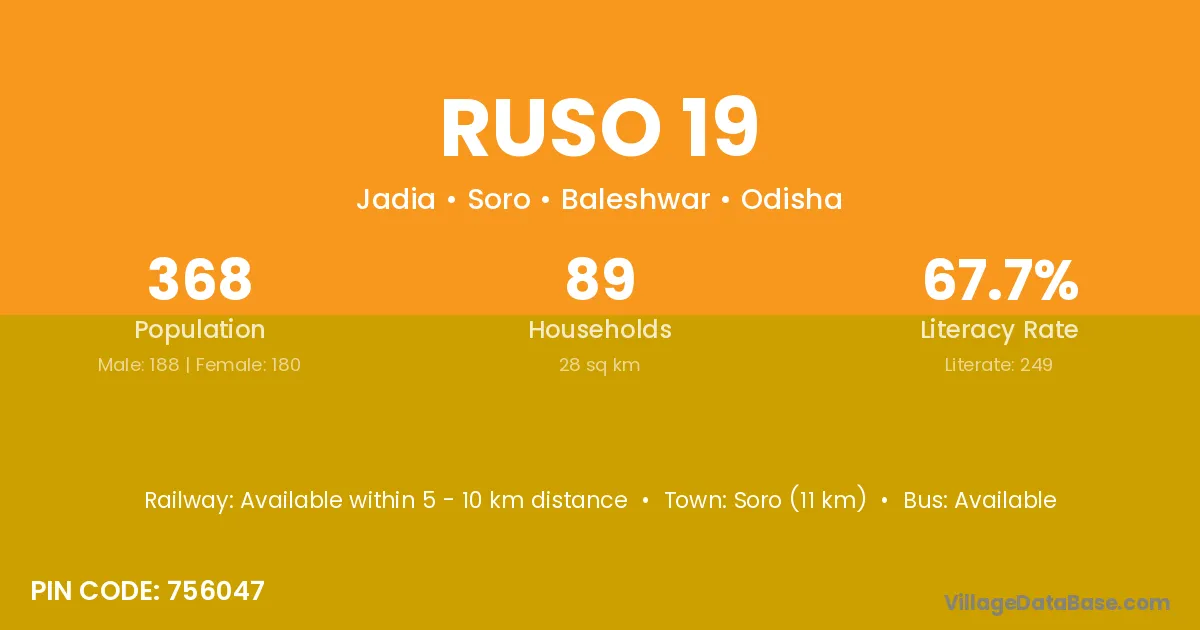 Ruso 19 village is located in the Soro Tehsil of the Baleshwar district in Odisha .