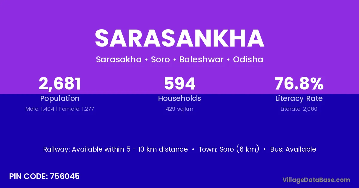 According to Census 2011 information, the village code of Sarasankha village is 756045.