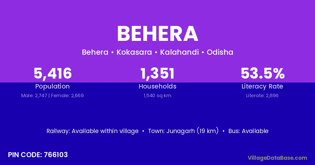Bargarh (80 km) is the nearest town to Behera village for major economic activities and is located approximately 80 km away.