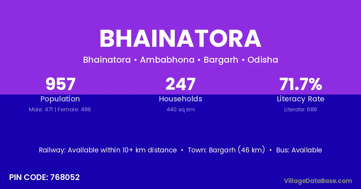 Bhainatora village is located in the Ambabhona Tehsil of the Bargarh district in Odisha .
