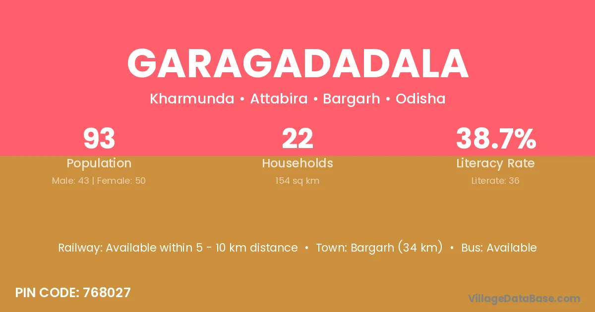 Bargarh (34 km) is the nearest town to Garagadadala village for major economic activities and is located approximately 34 km away.