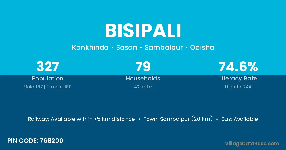 Barpali (9 km) is the nearest town to Bisipali village for major economic activities and is located approximately 9 km away.