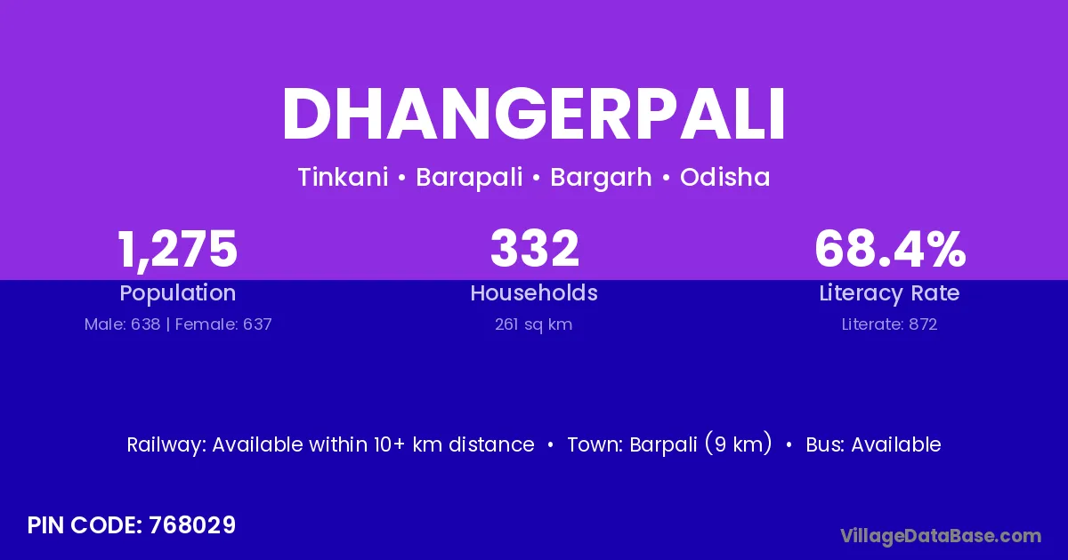 Barpali (9 km) is the nearest town to Dhangerpali village for major economic activities and is located approximately 9 km away.