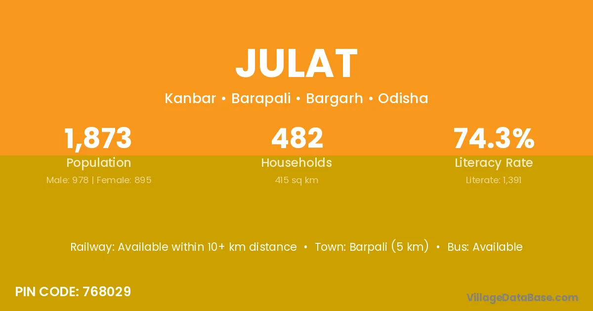 Barpali (5 km) is the nearest town to Julat village for major economic activities and is located approximately 5 km away.
