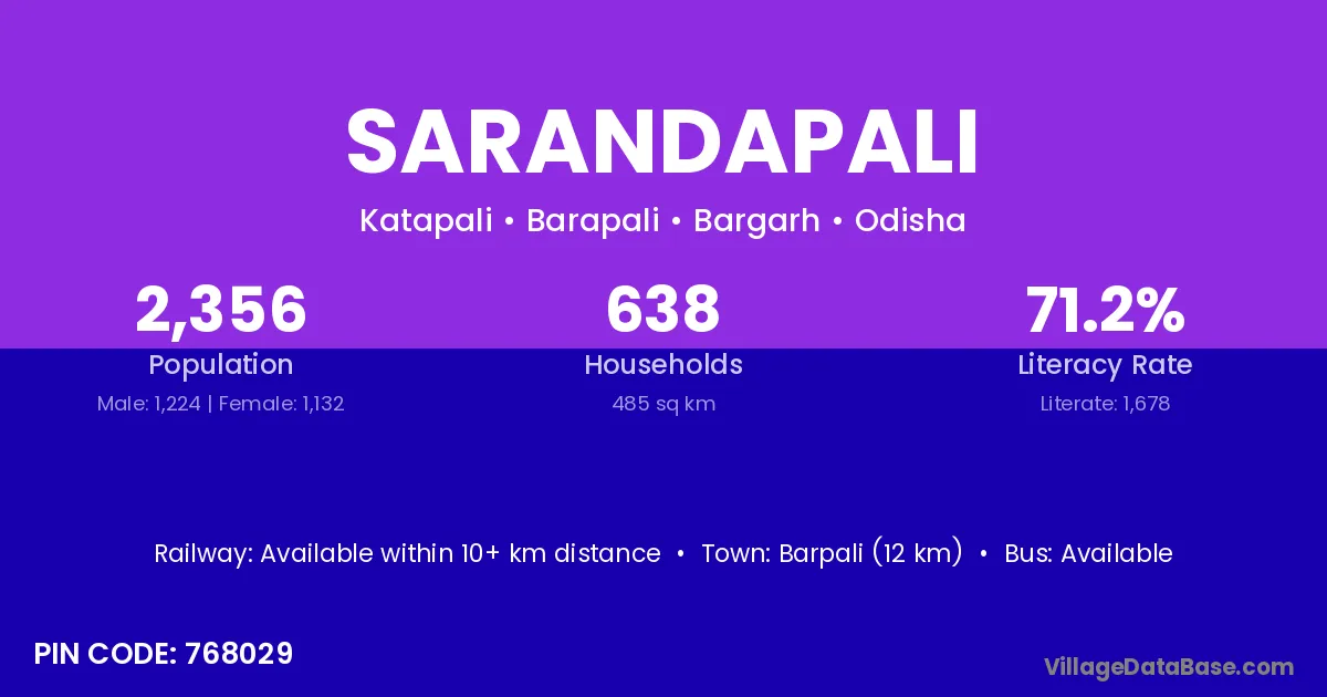 Barpali (12 km) is the nearest town to Sarandapali village for major economic activities and is located approximately 12 km away.