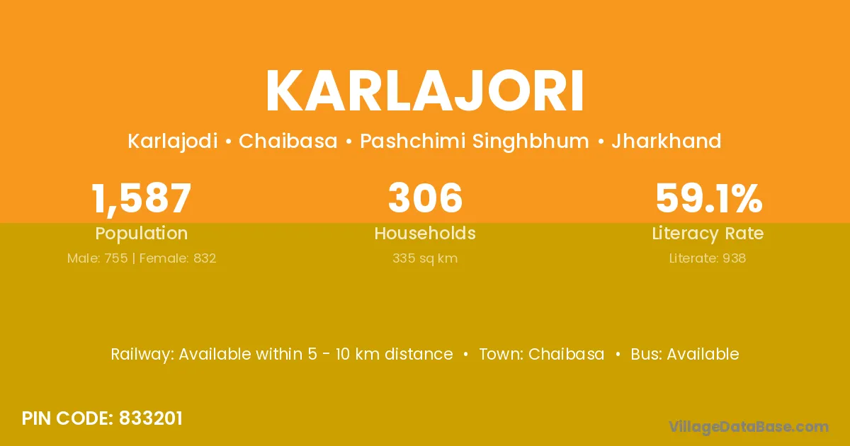 According to Census 2011 information, the village code of Karlajori village is 768030.