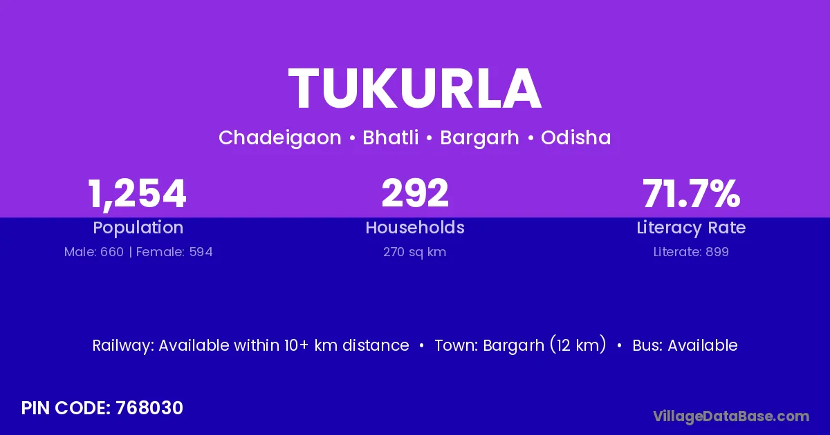 Bargarh (12 km) is the nearest town to Tukurla village for major economic activities and is located approximately 12 km away.