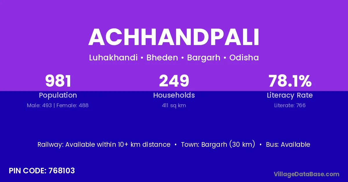Bargarh (30 km) is the nearest town to Achhandpali village for major economic activities and is located approximately 30 km away.