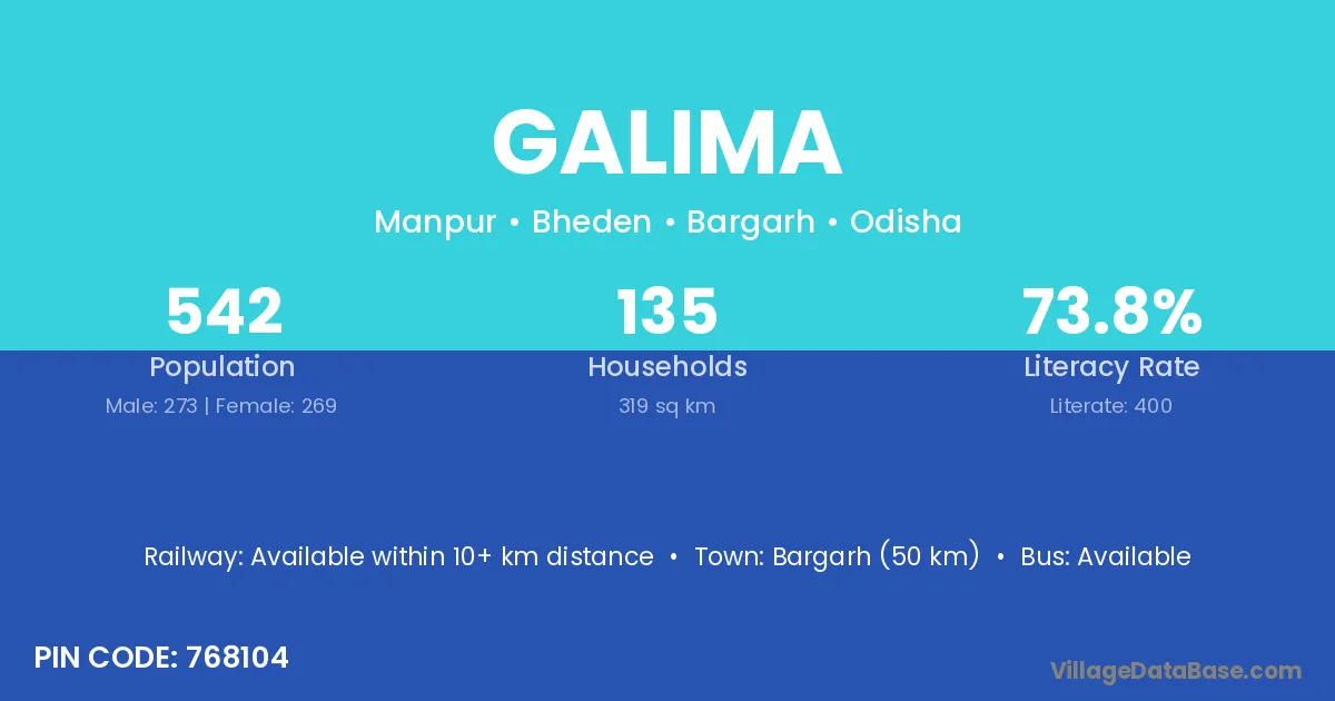 Bargarh (50 km) is the nearest town to Galima village for major economic activities and is located approximately 50 km away.