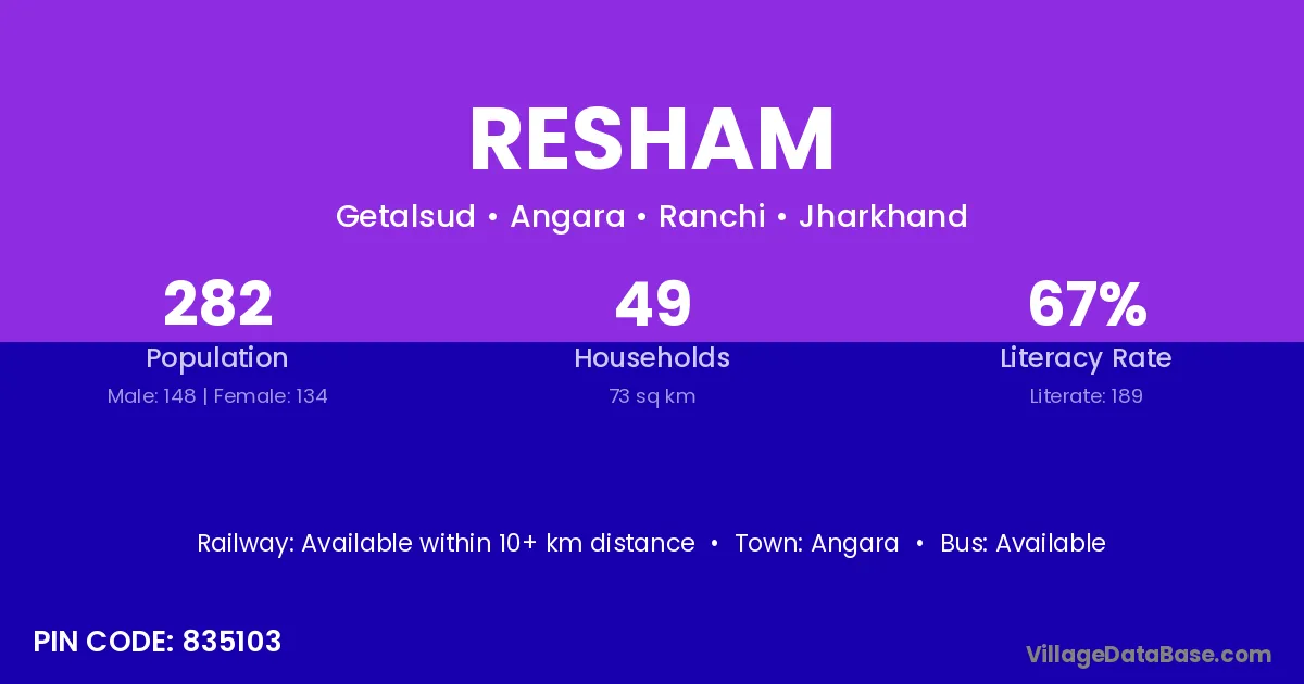 Bargarh (35 km) is the nearest town to Resham village for major economic activities and is located approximately 35 km away.