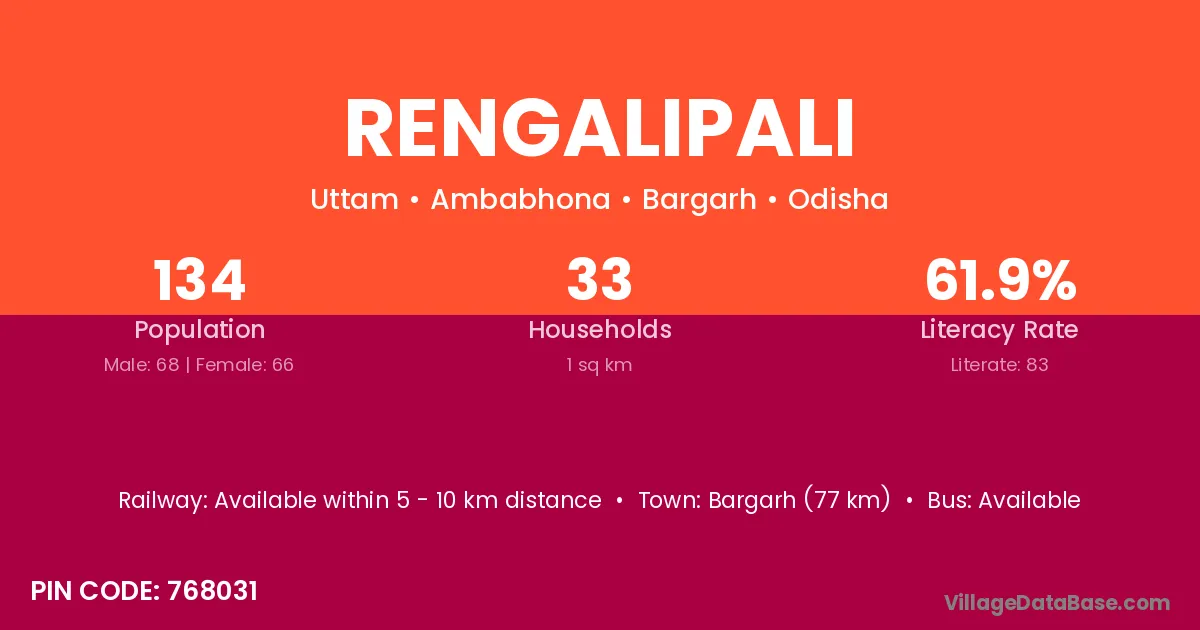 Bargarh (40 km) is the nearest town to Rengalipali village for major economic activities and is located approximately 40 km away.