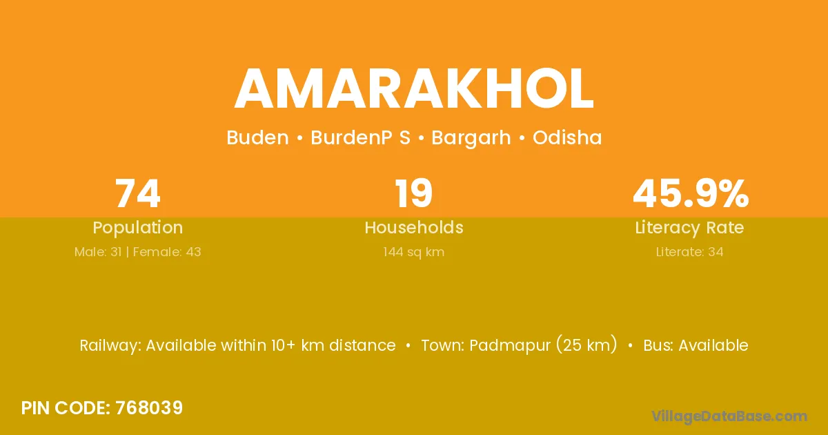 Padmapur (25 km) is the nearest town to Amarakhol village for major economic activities and is located approximately 25 km away.