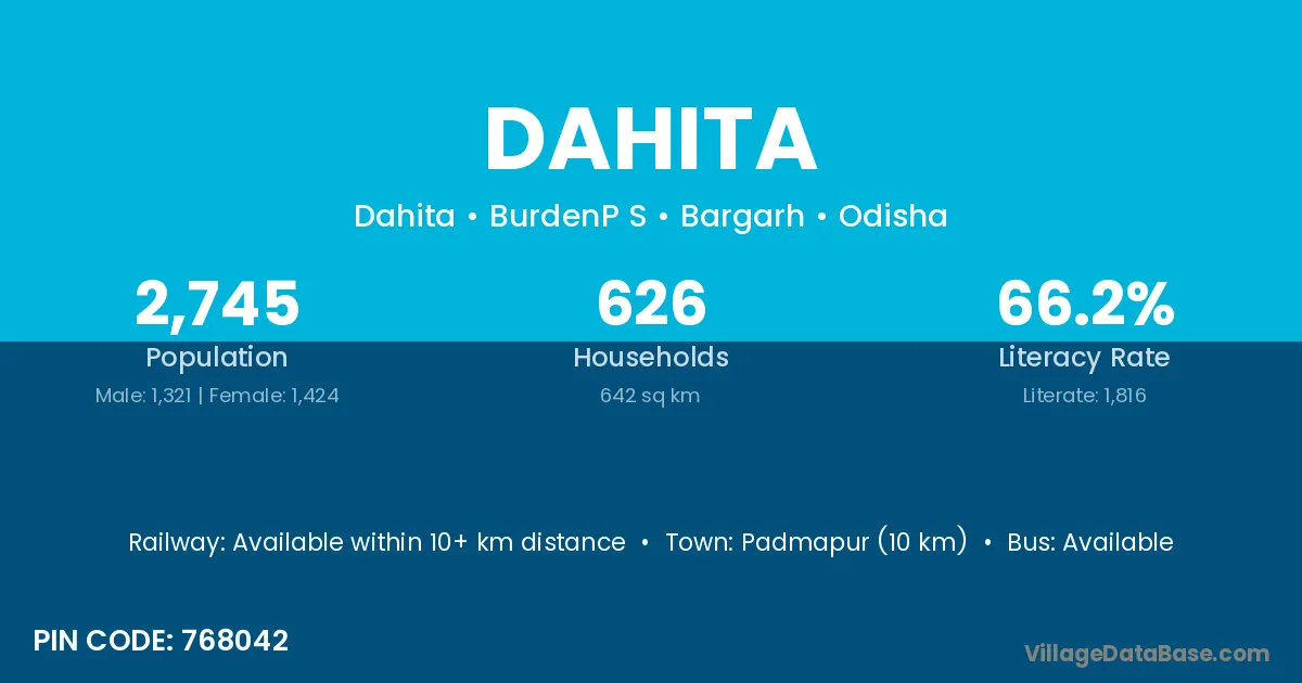 Padmapur (10 km) is the nearest town to Dahita village for major economic activities and is located approximately 10 km away.