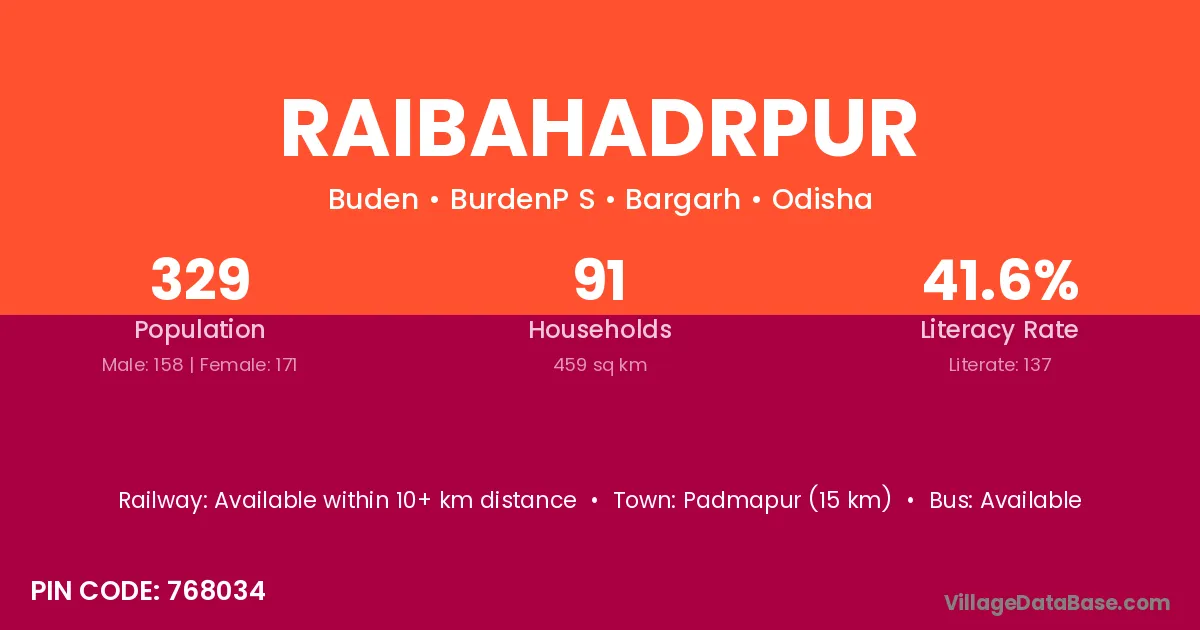 Padmapur (15 km) is the nearest town to Raibahadrpur village for major economic activities and is located approximately 15 km away.