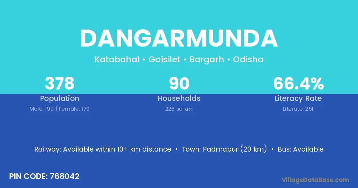 Dangarmunda village has a total population of 378 people, of which 199 are males and 179 are females.