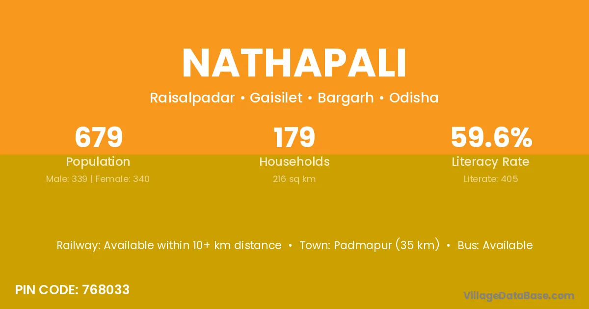 Padmapur (35 km) is the nearest town to Nathapali village for major economic activities and is located approximately 35 km away.