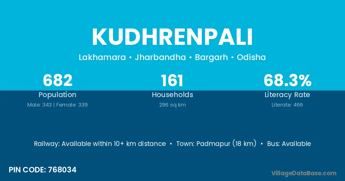 Padmapur (18 km) is the nearest town to Kudhrenpali village for major economic activities and is located approximately 18 km away.