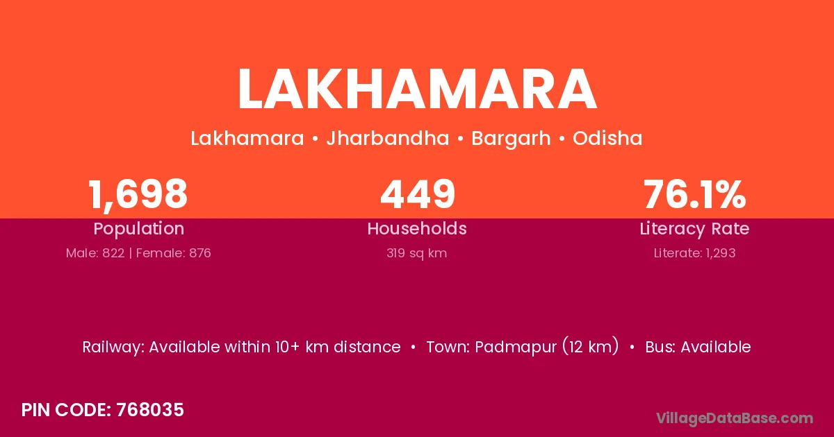 Padmapur (12 km) is the nearest town to Lakhamara village for major economic activities and is located approximately 12 km away.