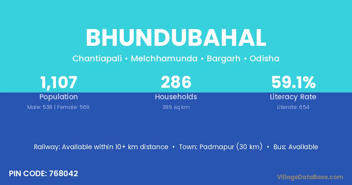 Padmapur (30 km) is the nearest town to Bhundubahal village for major economic activities and is located approximately 30 km away.