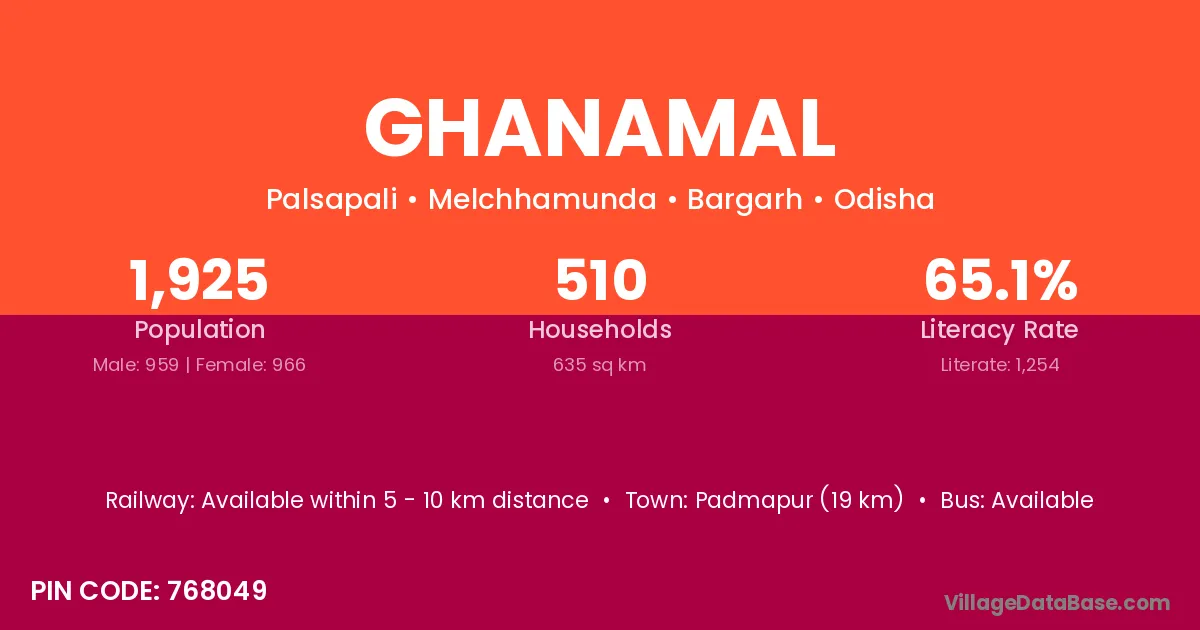 Padmapur (19 km) is the nearest town to Ghanamal village for major economic activities and is located approximately 19 km away.