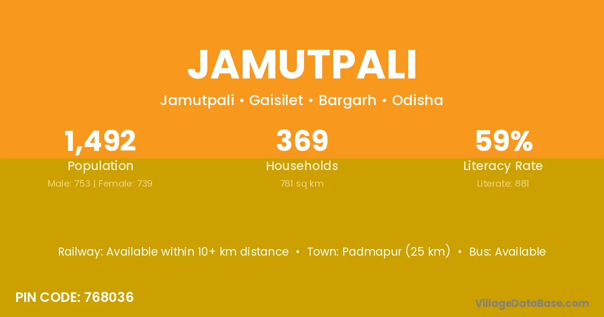 Padmapur (30 km) is the nearest town to Jamutpali village for major economic activities and is located approximately 30 km away.