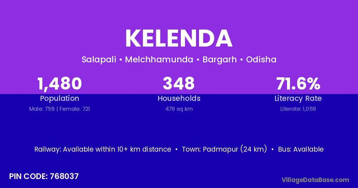 Padmapur (24 km) is the nearest town to Kelenda village for major economic activities and is located approximately 24 km away.