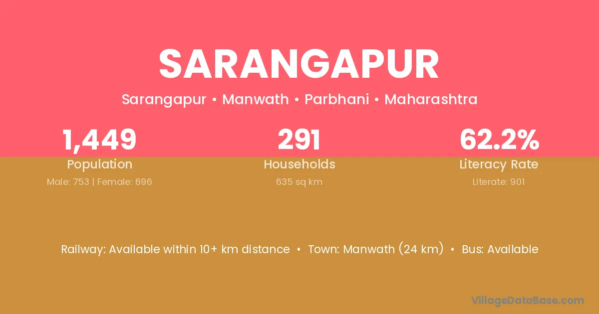 Padmapur (18 km) is the nearest town to Sarangapur village for major economic activities and is located approximately 18 km away.