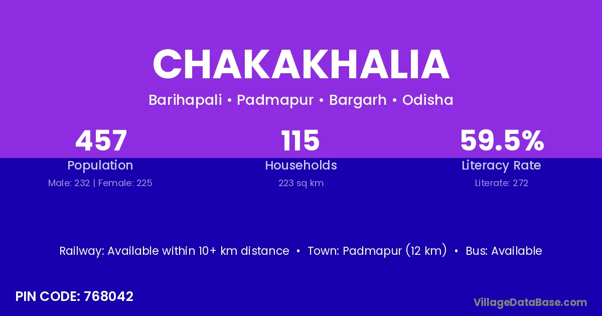 Padmapur (12 km) is the nearest town to Chakakhalia village for major economic activities and is located approximately 12 km away.