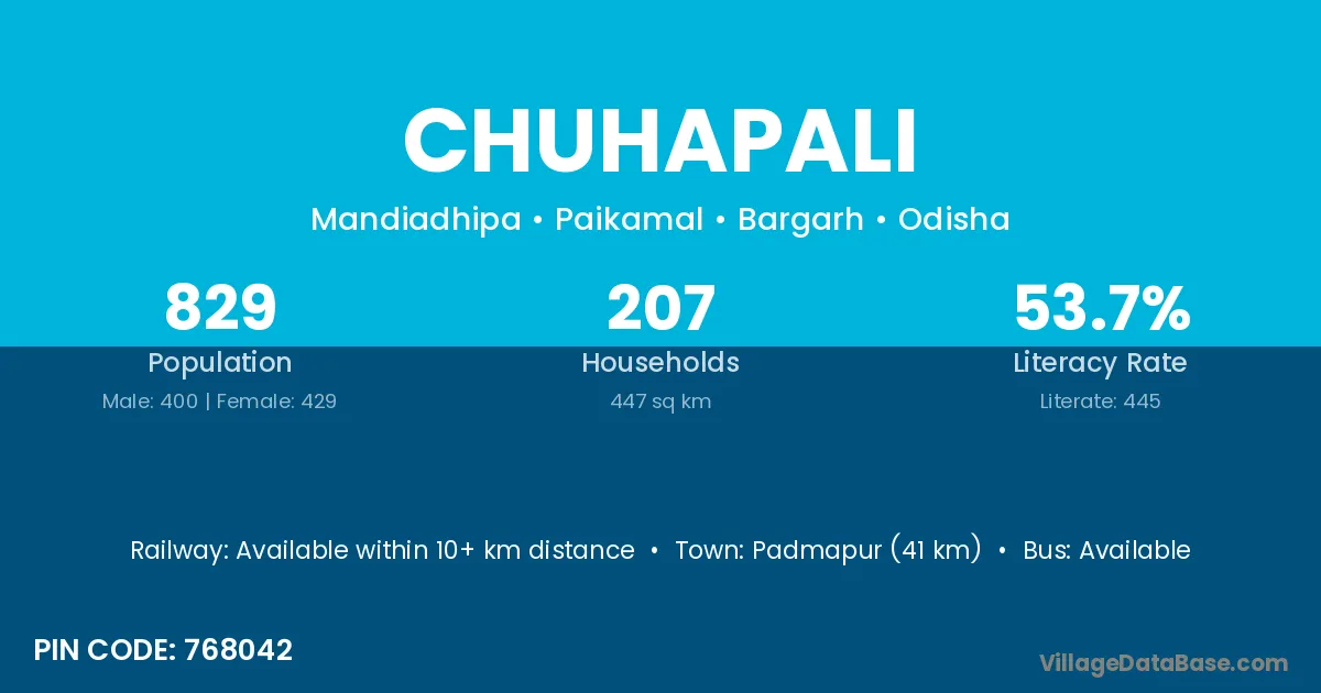 According to Census 2011 information, the village code of Chuhapali village is 768042.