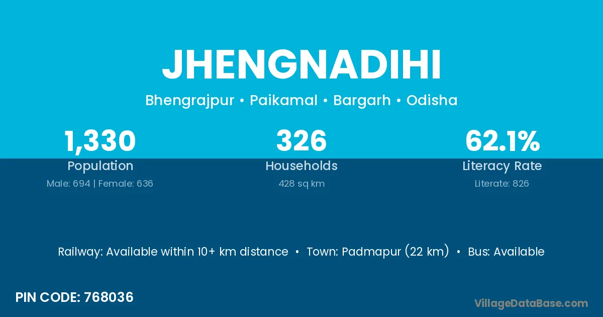 Padmapur (22 km) is the nearest town to Jhengnadihi village for major economic activities and is located approximately 22 km away.