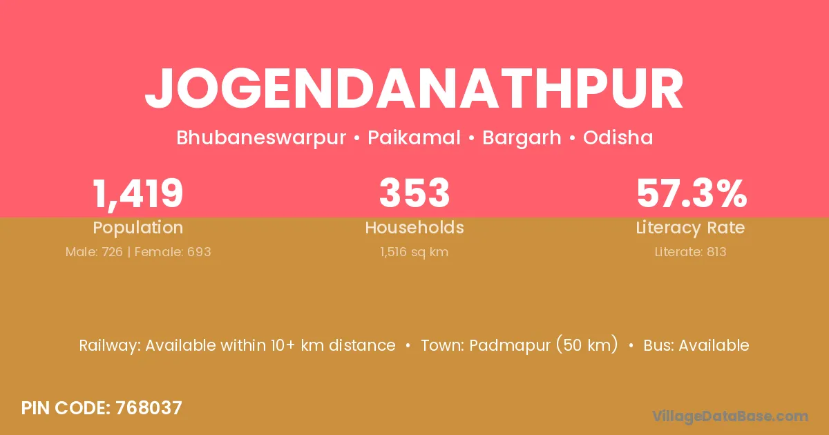 Padmapur (50 km) is the nearest town to Jogendanathpur village for major economic activities and is located approximately 50 km away.