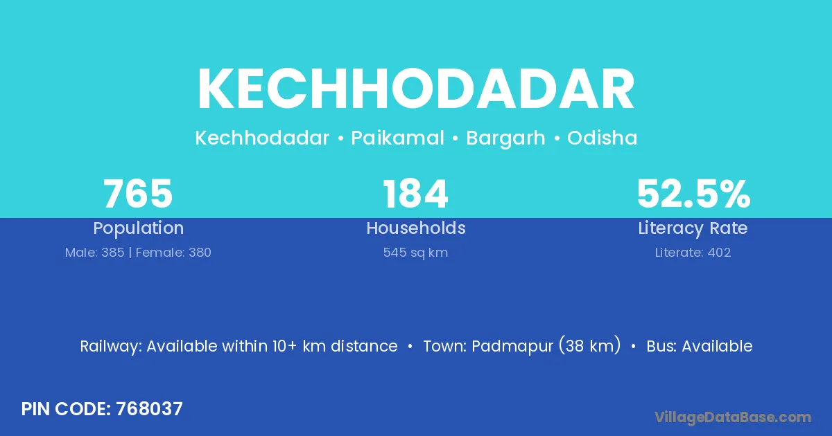 Padmapur (38 km) is the nearest town to Kechhodadar village for major economic activities and is located approximately 38 km away.