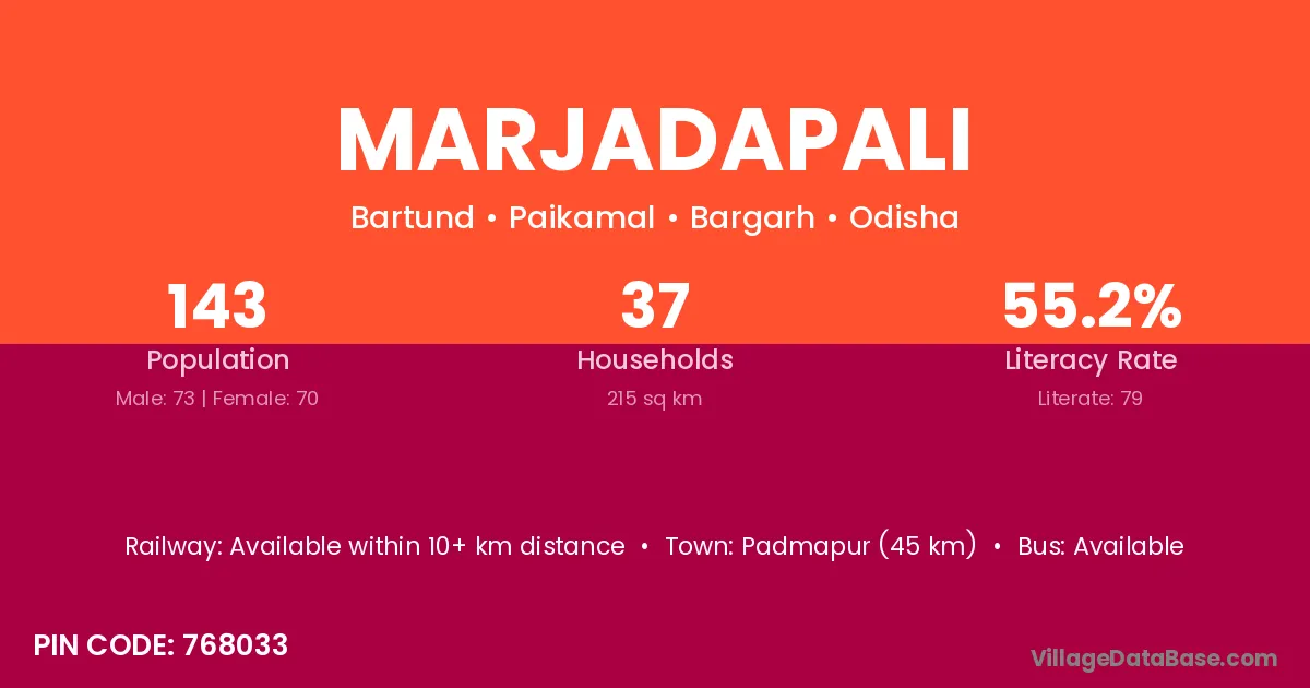 Padmapur (45 km) is the nearest town to Marjadapali village for major economic activities and is located approximately 45 km away.