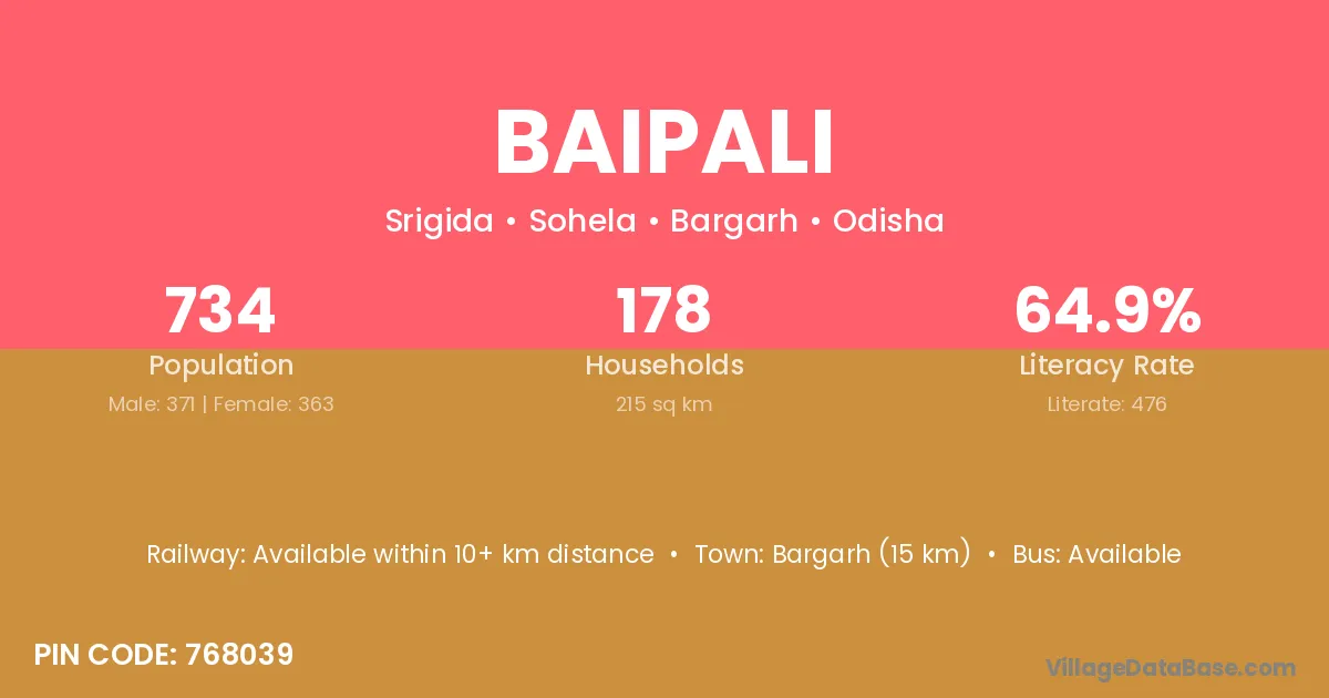 Bargarh (15 km) is the nearest town to Baipali village for major economic activities and is located approximately 15 km away.