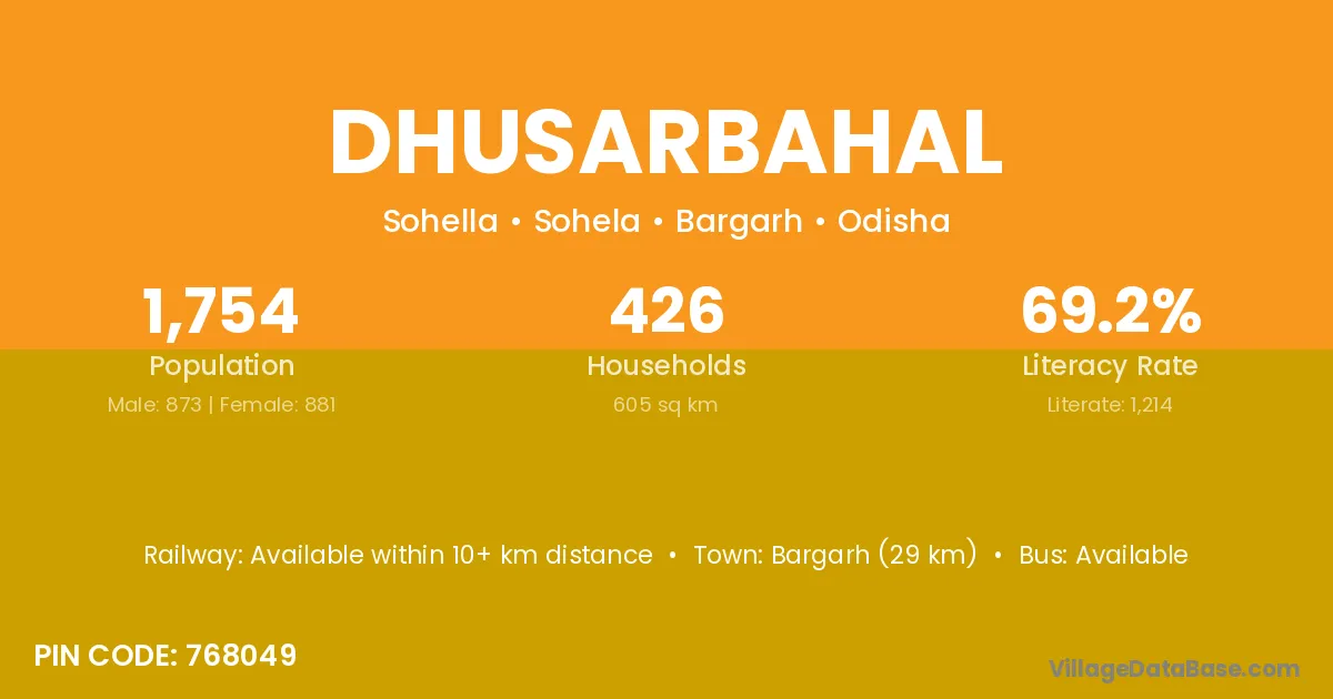 Bargarh (29 km) is the nearest town to Dhusarbahal village for major economic activities and is located approximately 29 km away.