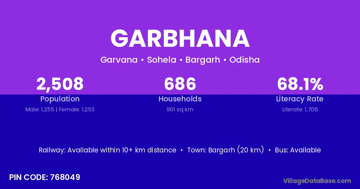 Bargarh (20 km) is the nearest town to Garbhana village for major economic activities and is located approximately 20 km away.